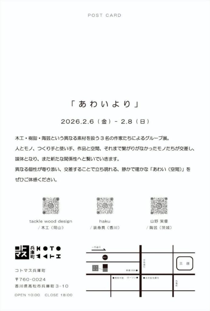 2026年 2月6日(金) ‐ 9日(日) 10:00 – 18:00