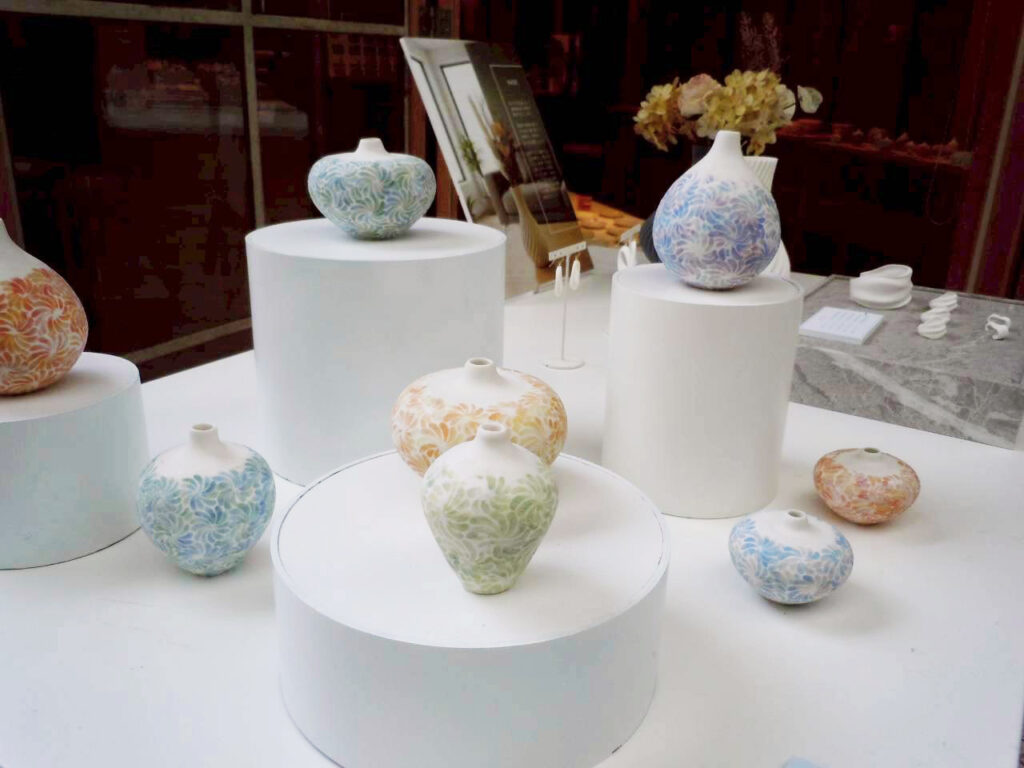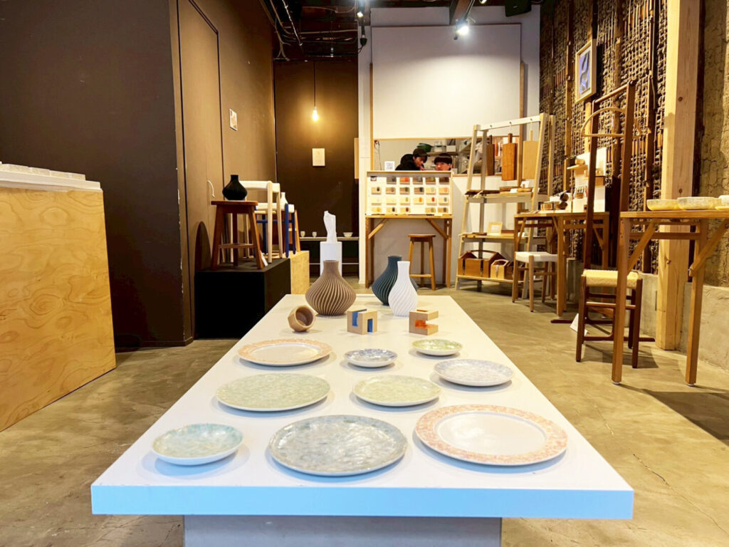 「あわいより」は、陶芸・木工・樹脂という異なる素材を扱う作家たちによる3人展。